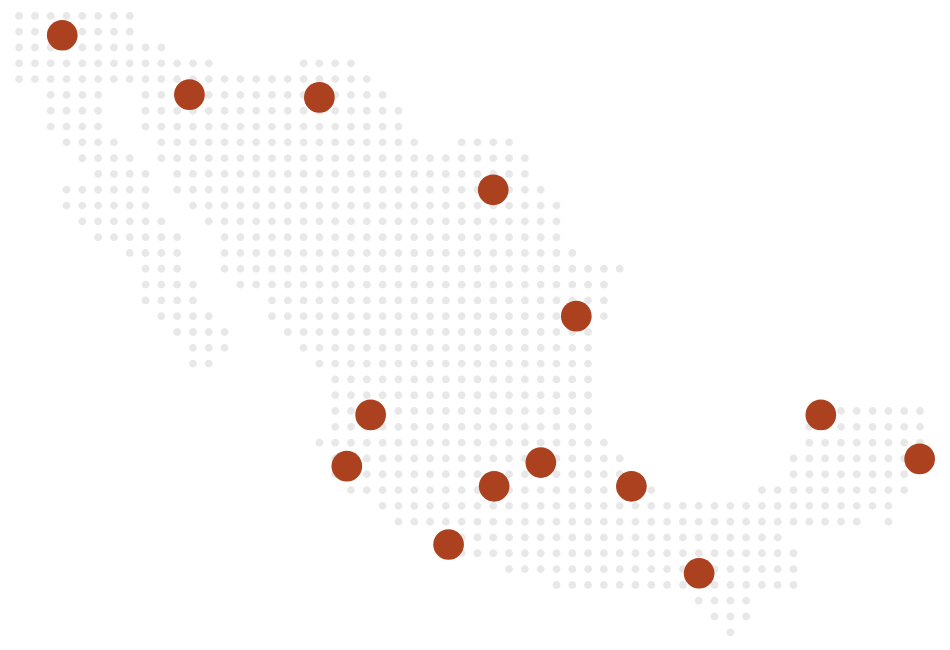 Baja California Sonora Chihuahua Nuevo León Tamaulipas Jalisco Colima CDMX EDOMEX Michoacán Veracruz Chiapas Yucatán Quintana Roo